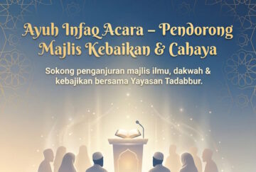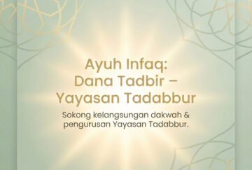 Di Yayasan Tadabbur (YT), kami membuka bukan sekadar ruang, tetapi gerbang cahaya pahala untuk anda. Di mana setiap infaq yang disumbang akan menjelma menjadi aliran kebaikan pahala yang tidak pernah putus di dunia akhirat.